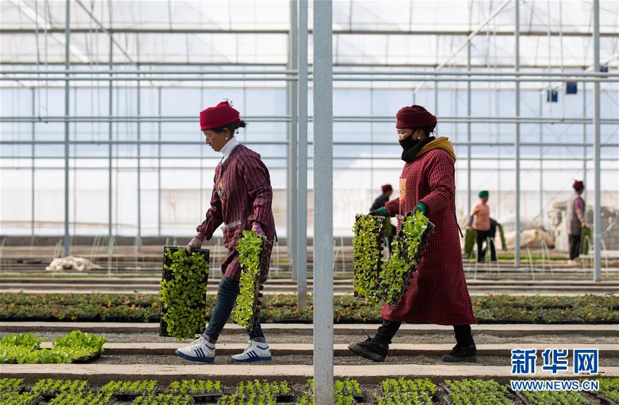 在位于昭覺縣四開鄉(xiāng)好谷村的涪昭現(xiàn)代農(nóng)業(yè)示范園區(qū),當(dāng)?shù)卮迕裨谑卟舜笈锢飫谧鳎?019年12月10日攝)。新華社記者江宏景攝