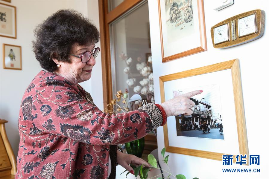 4月23日,索尼婭·米爾伯格在位于德國柏林東郊一個小鎮(zhèn)的家中介紹她在上海舊居的照片。新華社記者單宇琦攝