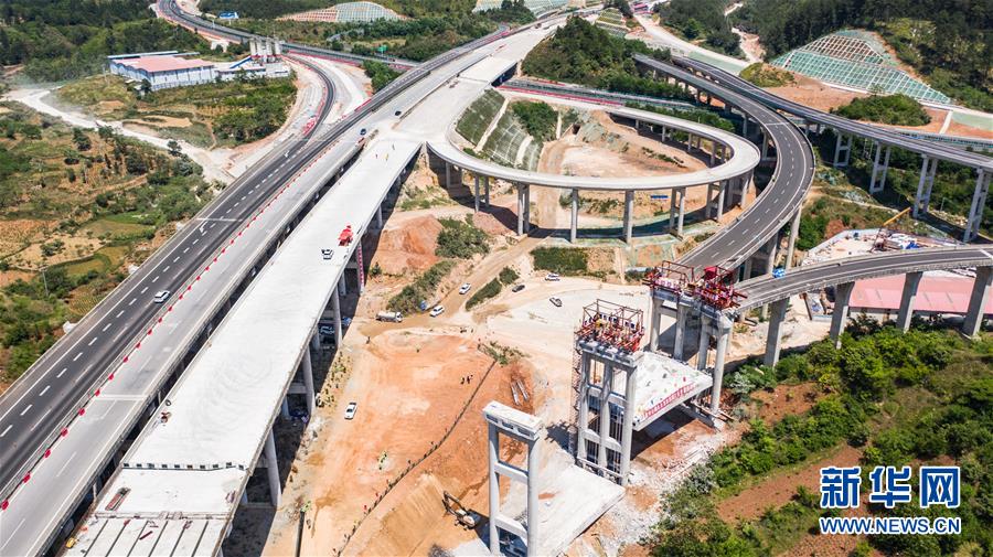 都安高速改擴建路段的惠水樞紐(無人機照片,5月9日攝)。 新華社記者 陶亮 攝
