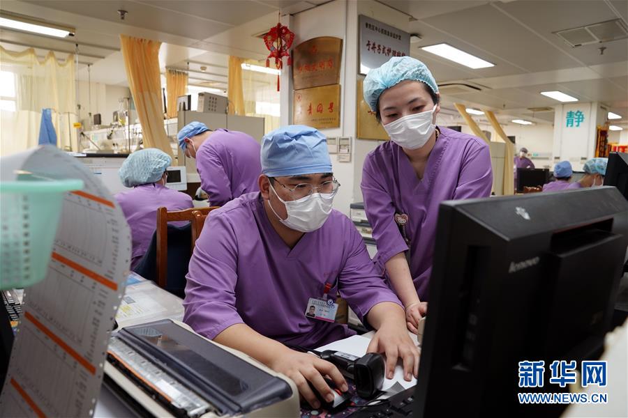 5月10日,在上海市普陀區(qū)中心醫(yī)院急診重癥監(jiān)護(hù)室,護(hù)士們?cè)诠ぷ?。新華社記者劉穎攝