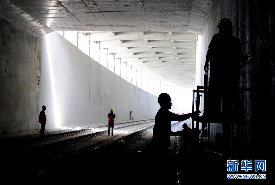 5月10日,中鐵電氣化局工程人員在鄭州新鄭機(jī)場(chǎng)至鄭州南站城際鐵路工地施工。新華社記者朱祥攝