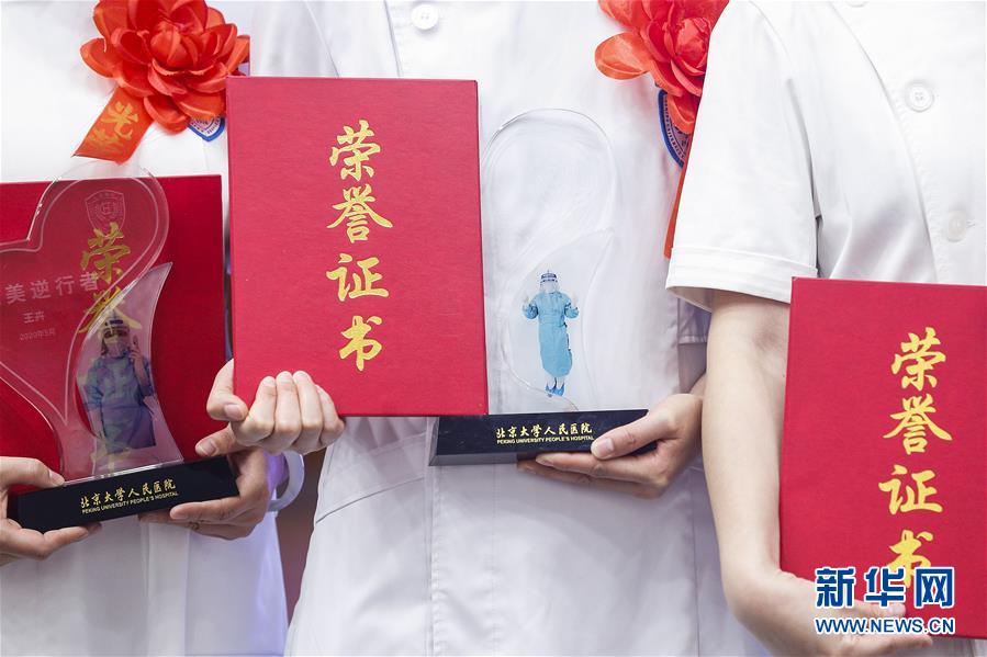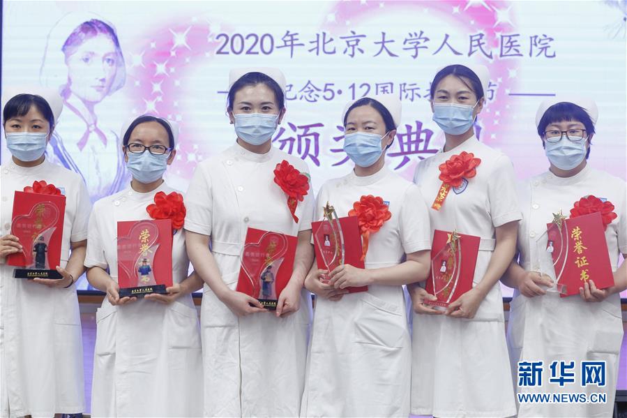 5月11日,獲獎護士在護士節(jié)活動上手捧獎杯和證書。在國際護士節(jié)到來之際,北京大學人民醫(yī)院11日舉辦慶祝護士節(jié)暨優(yōu)秀集體和個人表彰活動,并邀請援鄂醫(yī)療隊護士代表分享戰(zhàn)“疫”故事。我國今年護士節(jié)的主題為“致敬護士隊伍,攜手戰(zhàn)勝疫情”。新華社記者張玉薇攝