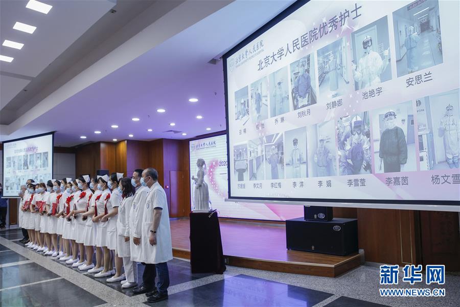 5月11日,獲獎護士在護士節(jié)活動上合影。在國際護士節(jié)到來之際,北京大學人民醫(yī)院11日舉辦慶祝護士節(jié)暨優(yōu)秀集體和個人表彰活動,并邀請援鄂醫(yī)療隊護士代表分享戰(zhàn)“疫”故事。我國今年護士節(jié)的主題為“致敬護士隊伍,攜手戰(zhàn)勝疫情”。新華社記者張玉薇攝