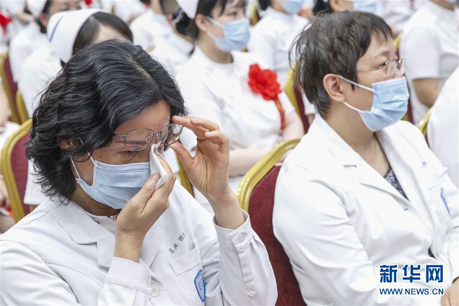 5月11日,北京大學人民醫(yī)院援鄂抗疫醫(yī)療隊感控專家高燕教授聽戰(zhàn)“疫”故事時感動落淚。在國際護士節(jié)到來之際,北京大學人民醫(yī)院11日舉辦慶祝護士節(jié)暨優(yōu)秀集體和個人表彰活動,并邀請援鄂醫(yī)療隊護士代表分享戰(zhàn)“疫”故事。我國今年護士節(jié)的主題為“致敬護士隊伍,攜手戰(zhàn)勝疫情”。新華社記者張玉薇攝