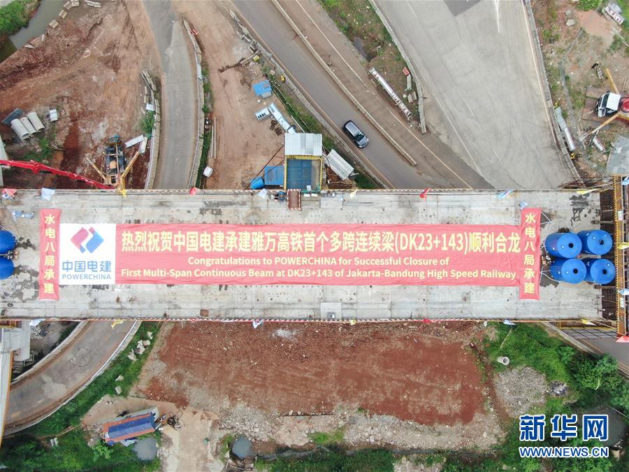 這是5月10日拍攝的印度尼西亞雅萬高鐵2號特大橋施工現(xiàn)場。當(dāng)日,印尼雅萬高鐵首個多跨連續(xù)剛構(gòu)完成合龍,標(biāo)志著雅萬高鐵2號特大橋施工進(jìn)入攻堅建設(shè)階段。新華社記者杜宇攝
