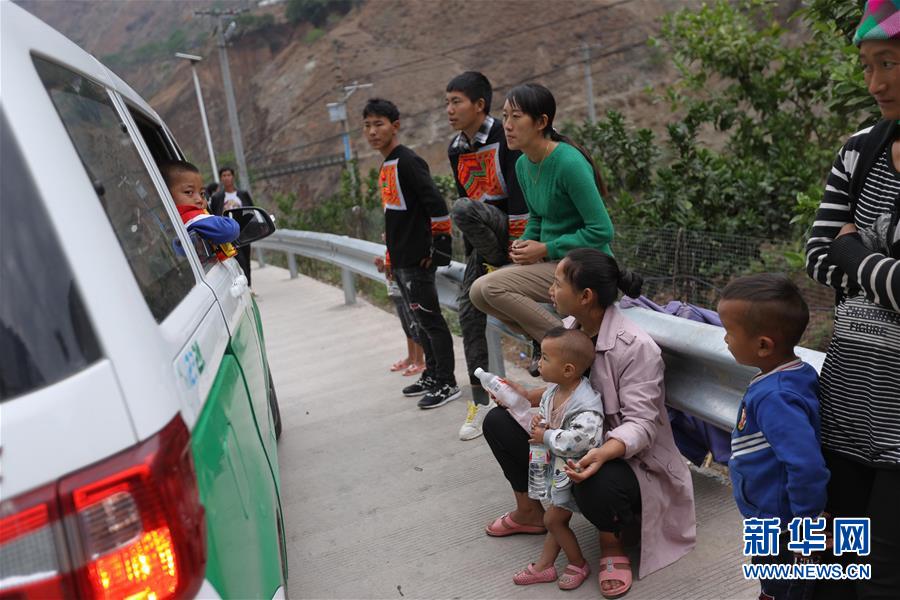 5月12日,四川省昭覺(jué)縣阿土列爾村第一批26戶貧困戶坐上開(kāi)往昭覺(jué)縣易地扶貧搬遷縣城集中安置點(diǎn)的新家,與其他村民道別。新華社記者江宏景攝
