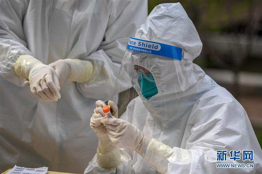 5月15日,在舒蘭市建馨園小區(qū),工作人員為居民采集咽拭子。當日,從吉林市7家市直醫(yī)院抽調的300名護士經培訓后,全部投入到舒蘭市(隸屬于吉林市)核酸采樣工作中。為提供追溯傳染源所必需的核酸檢測相關數據,舒蘭市根據確診病例的活動軌跡,將流調和核酸檢測范圍擴大至本地確診病例和無癥狀感染者的次密接人員及一般接觸者。新華社記者張楠攝