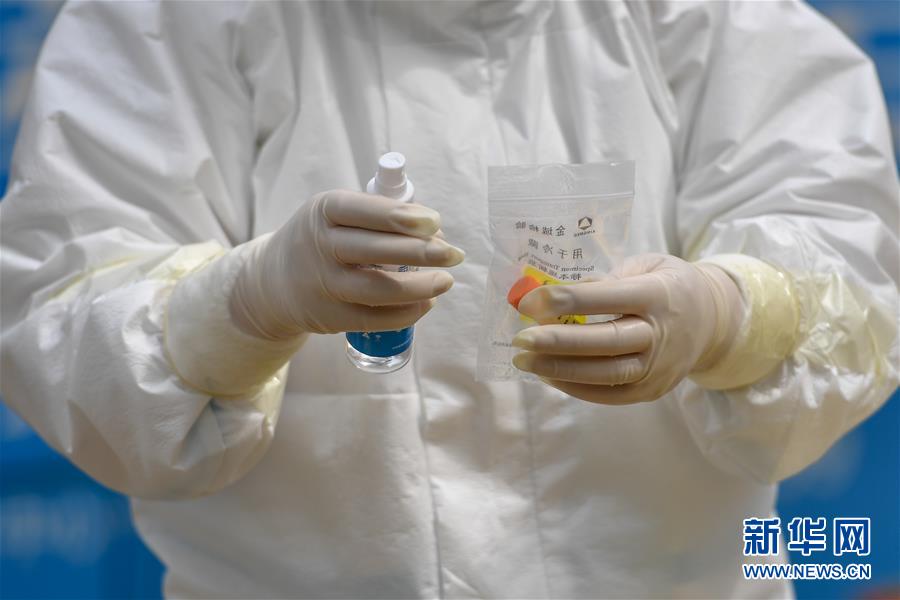 5月15日,在舒蘭市建馨園小區(qū),工作人員對承裝樣本的塑料袋進(jìn)行消毒。當(dāng)日,從吉林市7家市直醫(yī)院抽調(diào)的300名護(hù)士經(jīng)培訓(xùn)后,全部投入到舒蘭市(隸屬于吉林市)核酸采樣工作中。為提供追溯傳染源所必需的核酸檢測相關(guān)數(shù)據(jù),舒蘭市根據(jù)確診病例的活動軌跡,將流調(diào)和核酸檢測范圍擴(kuò)大至本地確診病例和無癥狀感染者的次密接人員及一般接觸者。新華社記者張楠攝