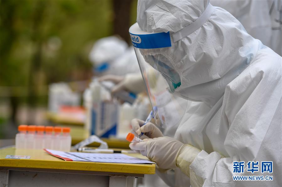 5月15日,在舒蘭市建馨園小區(qū),工作人員為居民進(jìn)行采樣、登記。當(dāng)日,從吉林市7家市直醫(yī)院抽調(diào)的300名護(hù)士經(jīng)培訓(xùn)后,全部投入到舒蘭市(隸屬于吉林市)核酸采樣工作中。為提供追溯傳染源所必需的核酸檢測相關(guān)數(shù)據(jù),舒蘭市根據(jù)確診病例的活動軌跡,將流調(diào)和核酸檢測范圍擴(kuò)大至本地確診病例和無癥狀感染者的次密接人員及一般接觸者。新華社記者張楠攝