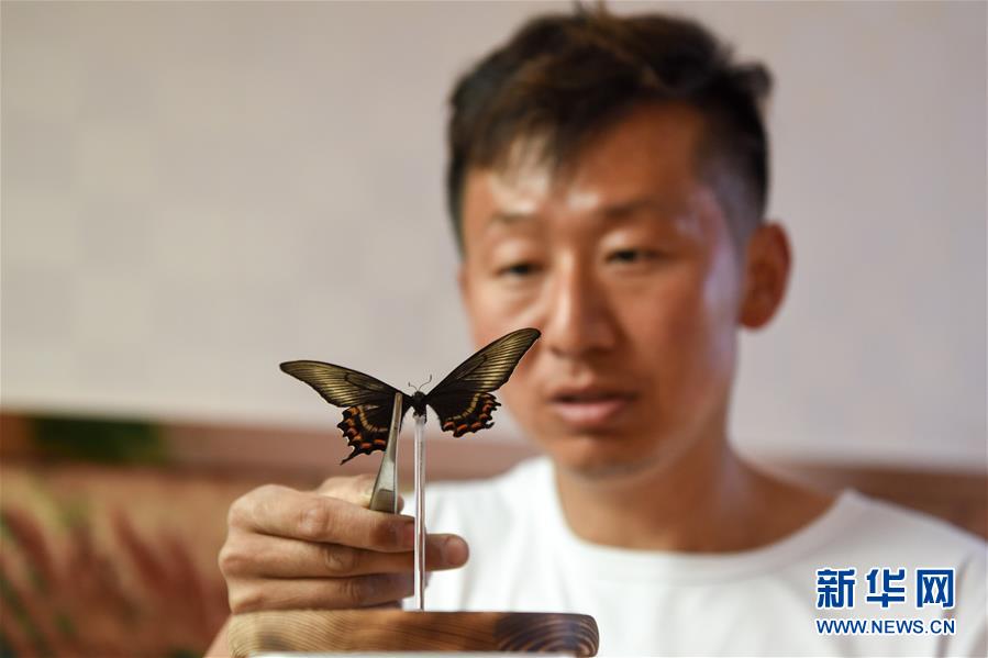 在吉木薩爾縣七彩蝶園,關(guān)富云在制作蝴蝶標(biāo)本(5月15日攝)。走進(jìn)關(guān)富云的七彩蝶園,游客不僅可以近距離接觸翩翩起舞的蝴蝶,還可以欣賞蝴蝶破繭成蝶的蛻變過程。今年34歲的關(guān)富云用9年的時(shí)間實(shí)現(xiàn)了自己的“蝴蝶夢”,完成美麗的“蝶變”。關(guān)富云家住新疆吉木薩爾縣北地社區(qū)。2011年,他看到一檔農(nóng)業(yè)致富節(jié)目,萌生了養(yǎng)殖蝴蝶的想法。關(guān)富云說,當(dāng)時(shí)蝴蝶養(yǎng)殖還是一種新興產(chǎn)業(yè),他抱著試一試的想法,在海南學(xué)習(xí)了3個(gè)月蝴蝶養(yǎng)殖,帶回100多個(gè)蝶蛹在家試驗(yàn)養(yǎng)殖。蝴蝶的生存周期短,在當(dāng)?shù)仞B(yǎng)殖需要克服溫度、濕度、病蟲害等問題。關(guān)富云不斷嘗試,越挫越勇,羽化成功的蝴蝶在2014年終于突破了萬只。蝴蝶的色彩艷麗,活體蝴蝶可用于婚慶、開業(yè)慶典等活動(dòng)中放飛,可以取得很好的收益。但它的生命短暫,如何才能最大化蝴蝶的效益,留住它的美呢?關(guān)富云動(dòng)起了心思,開始嘗試制作標(biāo)本和蝶翅畫。“和養(yǎng)殖不同,做蝶翅畫是個(gè)創(chuàng)作的過程,從選擇標(biāo)本到粘貼,每一步都要突出美感?!标P(guān)富云介紹,一幅色彩明艷、栩栩如生的蝶翅畫耗時(shí)多日才能完成。如今,關(guān)富云的活體蝴蝶和蝶翅畫通過線上線下銷售,產(chǎn)品還銷往北京、廈門等地。關(guān)富云的蝴蝶產(chǎn)品得到市場的認(rèn)可,政府也對他給予大力支持。2019年,吉木薩爾縣在泉子街鎮(zhèn)建起蝴蝶觀賞園,吸引了不少游客到此參觀游玩。對于未來的發(fā)展,關(guān)富云信心滿滿,“我希望把蝴蝶產(chǎn)業(yè)發(fā)展到天山南北,讓人們在寒冷的冬季也能觀賞到蝴蝶,并且讓更多人參與其中,致富脫貧”。新華社記者丁磊攝