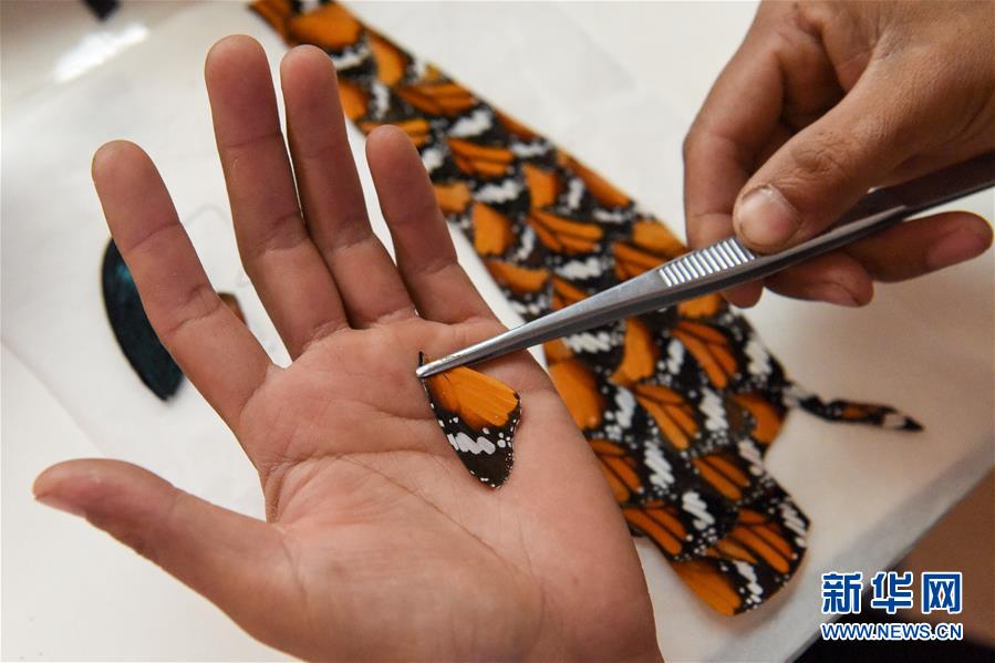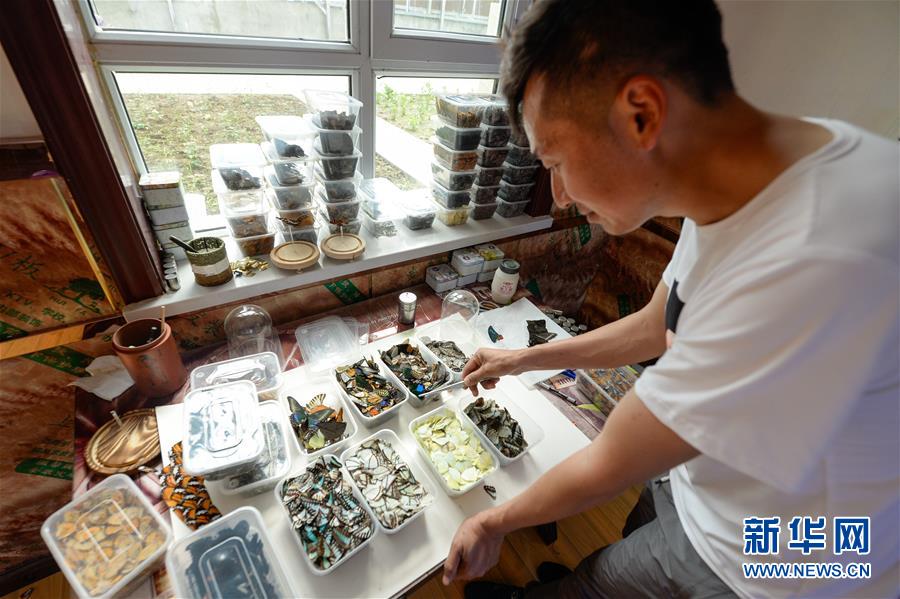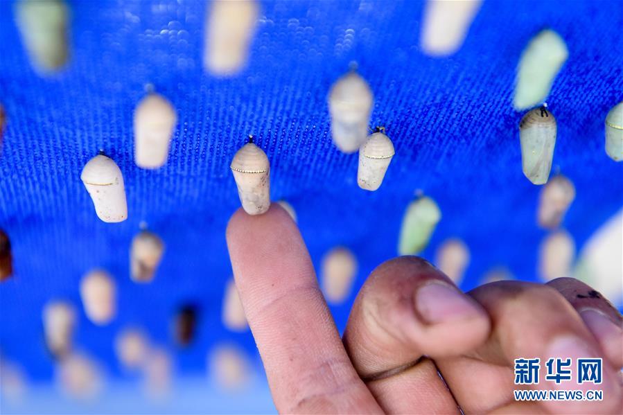 在吉木薩爾縣七彩蝶園,關(guān)富云在制作蝴蝶標(biāo)本(5月15日攝)。走進(jìn)關(guān)富云的七彩蝶園,游客不僅可以近距離接觸翩翩起舞的蝴蝶,還可以欣賞蝴蝶破繭成蝶的蛻變過程。今年34歲的關(guān)富云用9年的時間實(shí)現(xiàn)了自己的“蝴蝶夢”,完成美麗的“蝶變”。關(guān)富云家住新疆吉木薩爾縣北地社區(qū)。2011年,他看到一檔農(nóng)業(yè)致富節(jié)目,萌生了養(yǎng)殖蝴蝶的想法。關(guān)富云說,當(dāng)時蝴蝶養(yǎng)殖還是一種新興產(chǎn)業(yè),他抱著試一試的想法,在海南學(xué)習(xí)了3個月蝴蝶養(yǎng)殖,帶回100多個蝶蛹在家試驗(yàn)養(yǎng)殖。蝴蝶的生存周期短,在當(dāng)?shù)仞B(yǎng)殖需要克服溫度、濕度、病蟲害等問題。關(guān)富云不斷嘗試,越挫越勇,羽化成功的蝴蝶在2014年終于突破了萬只。蝴蝶的色彩艷麗,活體蝴蝶可用于婚慶、開業(yè)慶典等活動中放飛,可以取得很好的收益。但它的生命短暫,如何才能最大化蝴蝶的效益,留住它的美呢?關(guān)富云動起了心思,開始嘗試制作標(biāo)本和蝶翅畫?!昂宛B(yǎng)殖不同,做蝶翅畫是個創(chuàng)作的過程,從選擇標(biāo)本到粘貼,每一步都要突出美感?!标P(guān)富云介紹,一幅色彩明艷、栩栩如生的蝶翅畫耗時多日才能完成。如今,關(guān)富云的活體蝴蝶和蝶翅畫通過線上線下銷售,產(chǎn)品還銷往北京、廈門等地。關(guān)富云的蝴蝶產(chǎn)品得到市場的認(rèn)可,政府也對他給予大力支持。2019年,吉木薩爾縣在泉子街鎮(zhèn)建起蝴蝶觀賞園,吸引了不少游客到此參觀游玩。對于未來的發(fā)展,關(guān)富云信心滿滿,“我希望把蝴蝶產(chǎn)業(yè)發(fā)展到天山南北,讓人們在寒冷的冬季也能觀賞到蝴蝶,并且讓更多人參與其中,致富脫貧”。新華社記者丁磊攝