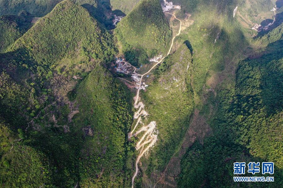 這是在進(jìn)行路面硬化的大化瑤族自治縣七百弄鄉(xiāng)弄合村弄魯屯到弄確屯的屯級(jí)路(5月14日攝,無人機(jī)照片)。新華社記者曹祎銘攝