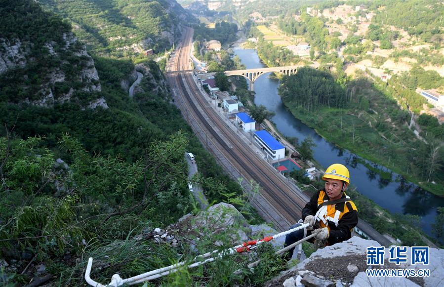 在太行山深處的中國(guó)鐵路鄭州局集團(tuán)有限公司月山工務(wù)段,有一群被稱為捅山工的人。每年汛期來(lái)臨前,他們要對(duì)山體進(jìn)行檢查、清理,在懸崖峭壁間“行走”,揮動(dòng)著手中的鋼釬,排除威脅鐵路行車(chē)安全的危石。