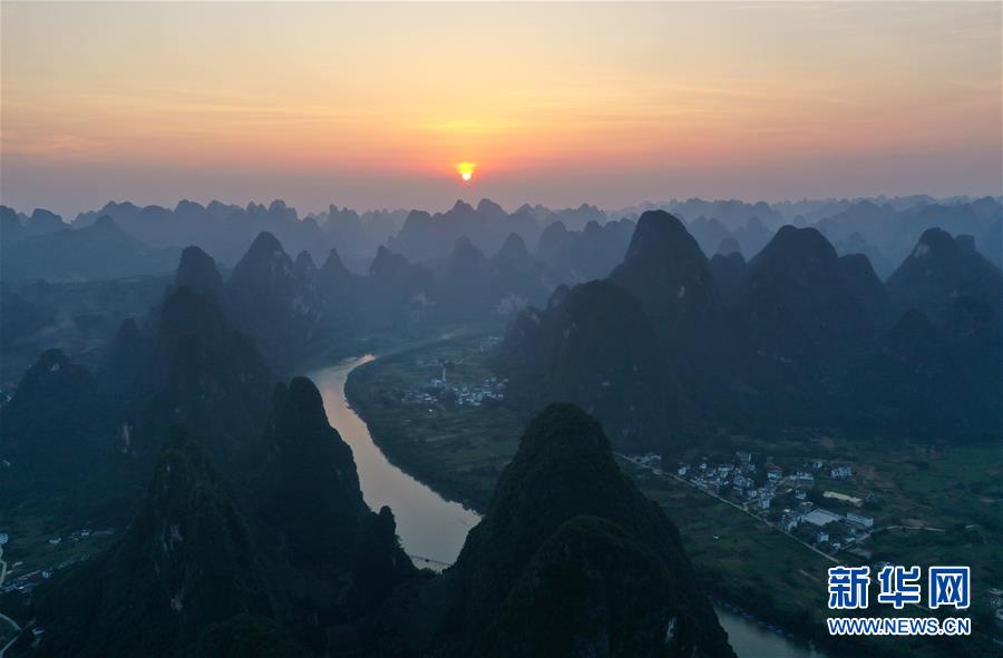 這是在廣西桂林市陽(yáng)朔縣興坪鎮(zhèn)拍攝的風(fēng)光(5月19日攝,無(wú)人機(jī)照片)。“蒼蒼森八桂,茲地在湘南。江作青羅帶,山如碧玉篸……”一千多年前,唐朝詩(shī)人韓愈寫盡桂林山水之美。初夏時(shí)節(jié),在廣西桂林市陽(yáng)朔縣興坪鎮(zhèn),藍(lán)天白云下,煙雨朦朧中,桂林山水盡顯秀美。新華社記者 周華 攝