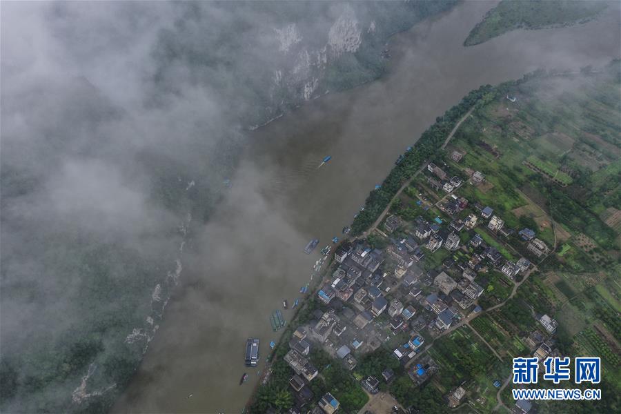 這是在廣西桂林市陽朔縣興坪鎮(zhèn)拍攝的山水風(fēng)光(5月21日攝,無人機(jī)照片)?!吧n蒼森八桂,茲地在湘南。江作青羅帶,山如碧玉篸……”一千多年前,唐朝詩人韓愈寫盡桂林山水之美。初夏時(shí)節(jié),在廣西桂林市陽朔縣興坪鎮(zhèn),藍(lán)天白云下,煙雨朦朧中,桂林山水盡顯秀美。新華社記者 曹祎銘