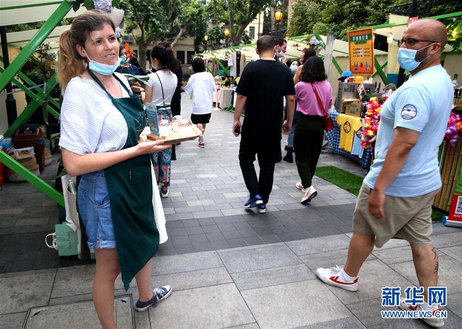 5月24日,調(diào)酒師在上海思南公館露天夜市進行網(wǎng)絡直播。入夏以來,上海思南公館推出“思南夜派對”夜間經(jīng)濟大排檔,包括生活市集、深夜食堂、夜游露天博物館等板塊,匯集了國潮品牌、創(chuàng)意美食、藝術(shù)衍生品等攤位,為公眾帶來一站式夜間休閑“加油站”,促進夜間消費。新華社記者陳飛攝