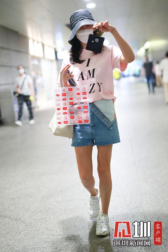 2020年5月25日,上海,張雨綺現(xiàn)身機場。她穿粉嫩T恤少女感十足,搭配牛仔短褲大秀美腿,拎包走機場笑眼彎彎女神范。
