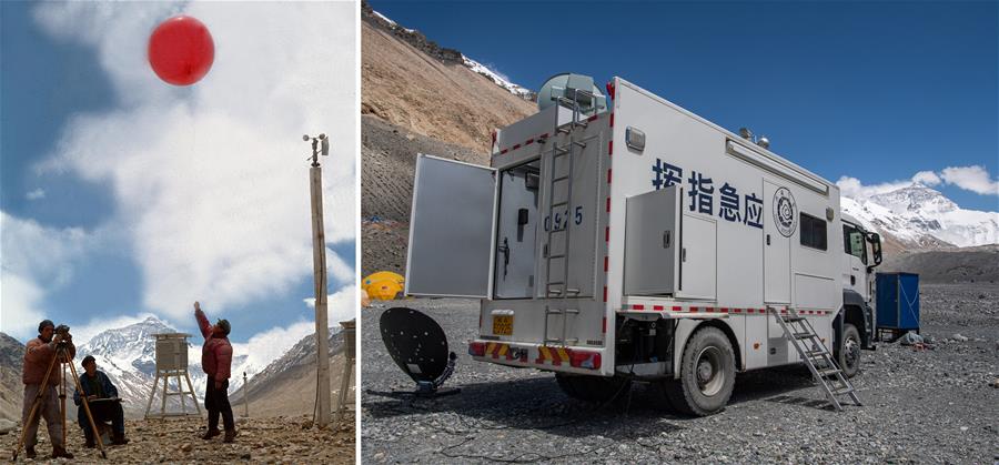 拼版照片:左圖為1975年6月9日,我國氣象工作者在珠穆朗瑪峰腳下的高山氣象站收集氣象資料。新華社記者程至善攝右圖為2020年5月25日拍攝的珠峰大本營氣象應(yīng)急保障車,西藏自治區(qū)氣象局氣象專家在這里與后方氣象專家進(jìn)行天氣會商。新華社記者普布扎西攝