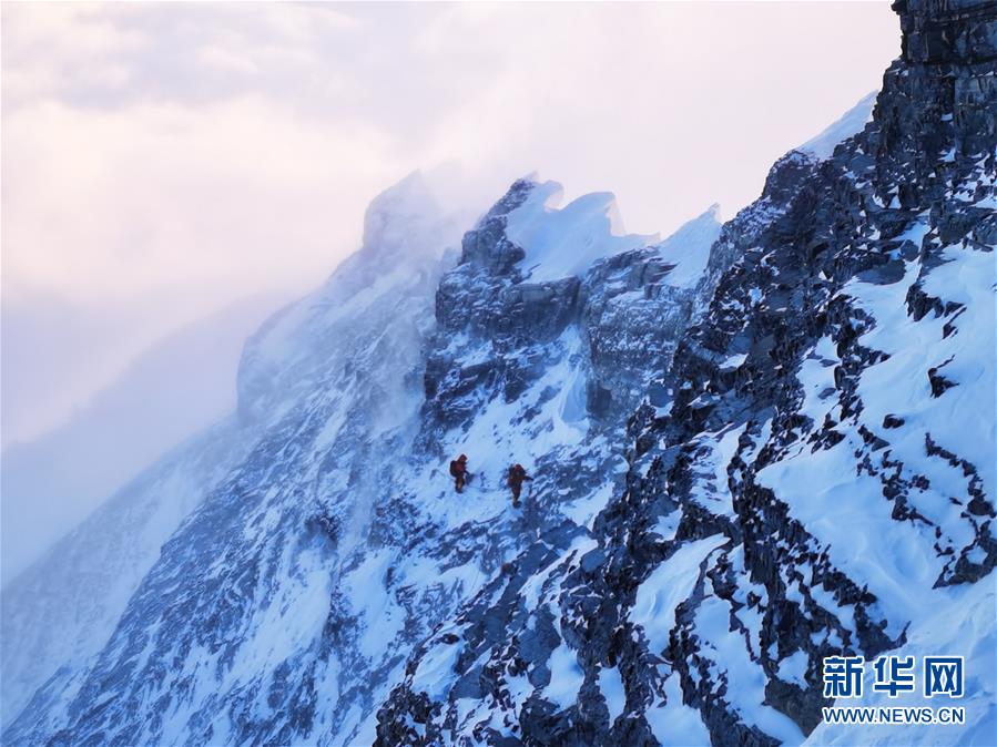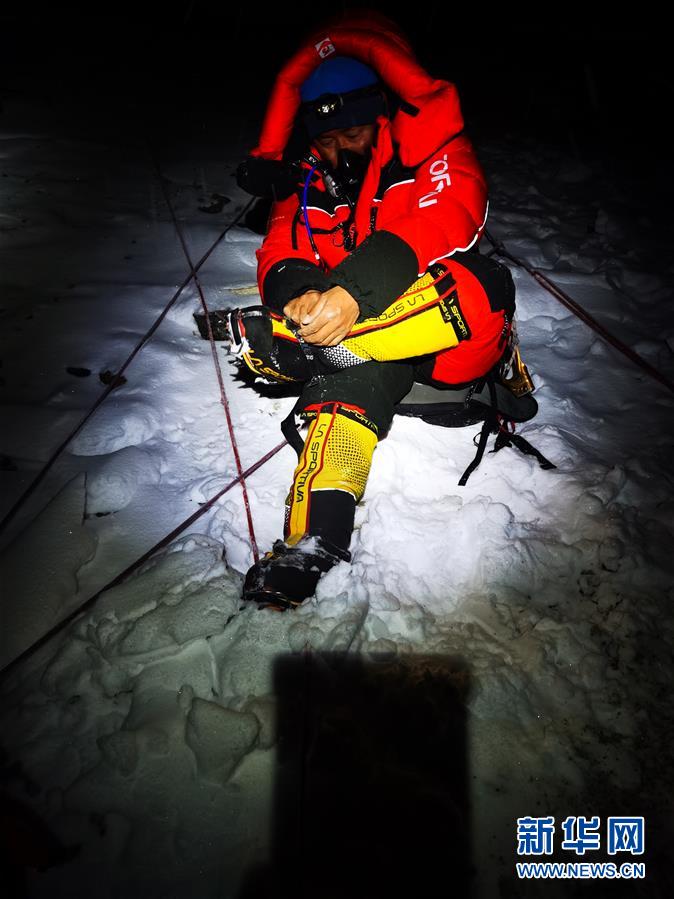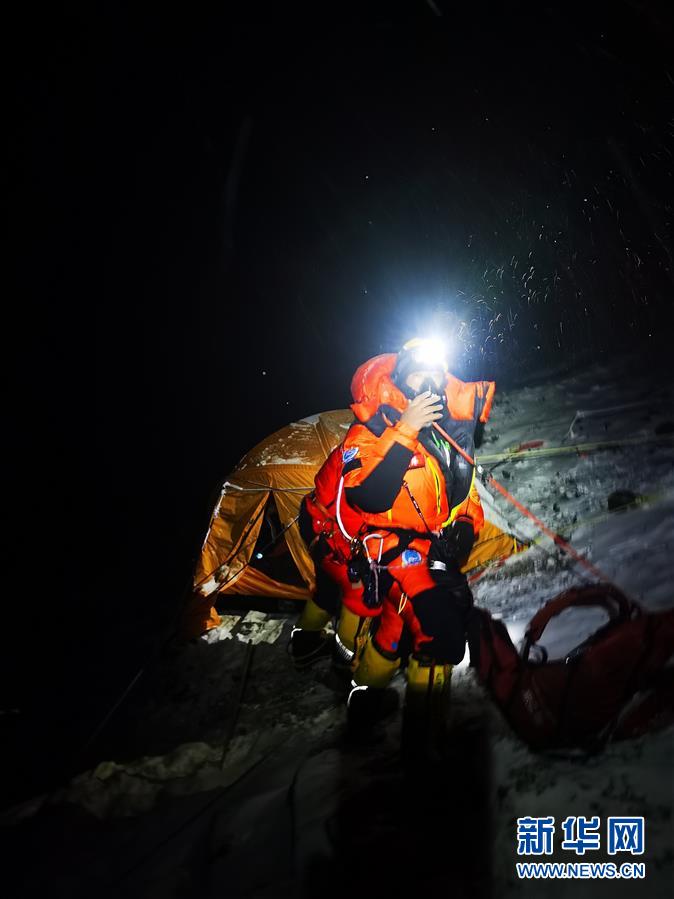 5月27日,2020珠峰高程測(cè)量登山隊(duì)從海拔8300米的突擊營地出發(fā)。新華社特約記者扎西次仁攝