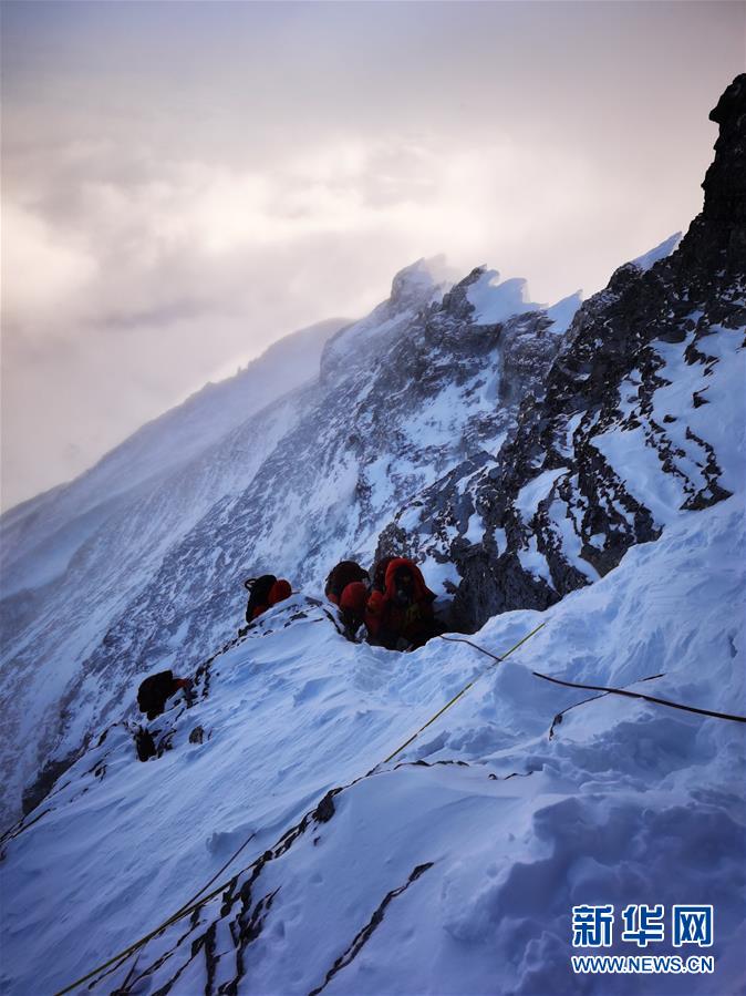 5月27日,2020珠峰高程測(cè)量登山隊(duì)正在向珠峰峰頂挺進(jìn)。新華社特約記者扎西次仁攝