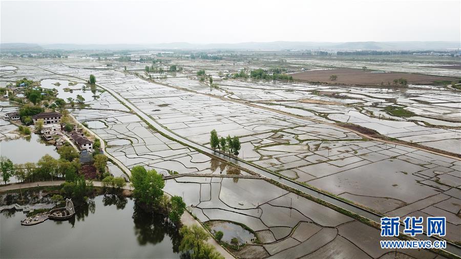 這是5月22日拍攝的寧安市渤海鎮(zhèn)插完秧的稻田(無人機照片)。新華社記者王建威攝