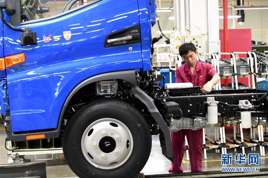 5月26日,工人在江淮汽車新港基地輕卡生產(chǎn)區(qū)內忙碌。新華社記者劉軍喜攝
