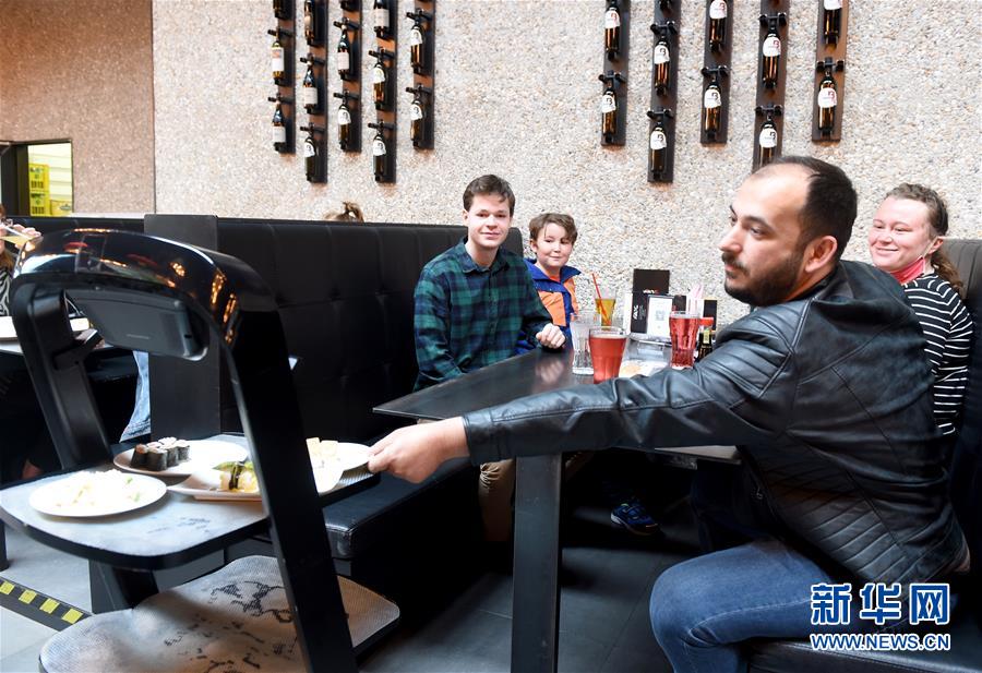 5月28日,在奧地利維也納一家亞洲餐廳內,機器人給顧客上菜。維也納的一家亞洲餐廳于疫情期間重新營業(yè)后,更多利用機器人上菜,以減少服務員和顧客之間的非必要接觸。新華社記者郭晨攝