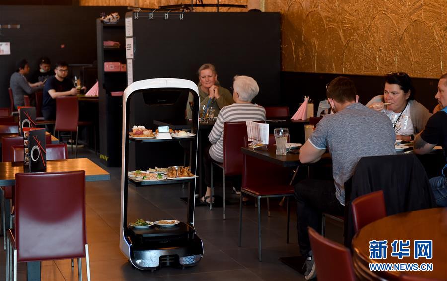 5月28日,在奧地利維也納一家亞洲餐廳內(nèi),機器人給顧客上菜。維也納的一家亞洲餐廳于疫情期間重新營業(yè)后,更多利用機器人上菜,以減少服務員和顧客之間的非必要接觸。新華社記者郭晨攝