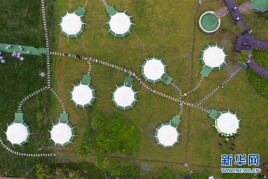 5月31日,空中俯瞰石淙花海內(nèi)的帳篷露營(yíng)區(qū)(無(wú)人機(jī)照片)。新華社記者徐昱攝