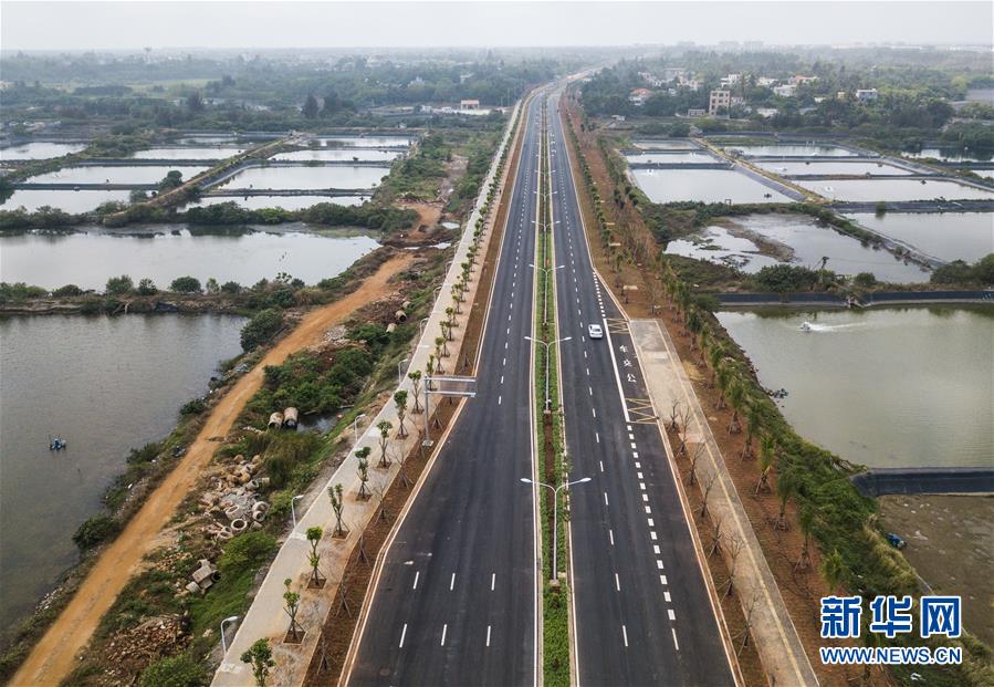 這是4月1日拍攝的位于??诮瓥|新區(qū)的東寨港大道(無人機(jī)照片)。新華社記者蒲曉旭攝