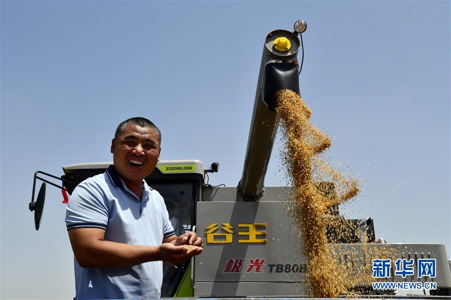 6月3日,在汶上縣郭倉(cāng)鎮(zhèn),種糧大戶郭波波在收獲小麥。目前,我國(guó)第二大小麥主產(chǎn)區(qū)山東6000多萬畝小麥進(jìn)入收獲階段。農(nóng)民們搶抓有利天氣,自南向北陸續(xù)開鐮。新華社記者郭緒雷攝。