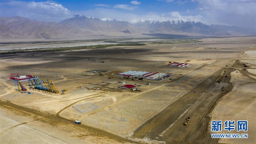 新疆塔什庫(kù)爾干機(jī)場(chǎng)施工現(xiàn)場(chǎng)(6月3日攝,無(wú)人機(jī)照片)。新華社記者胡虎虎攝。