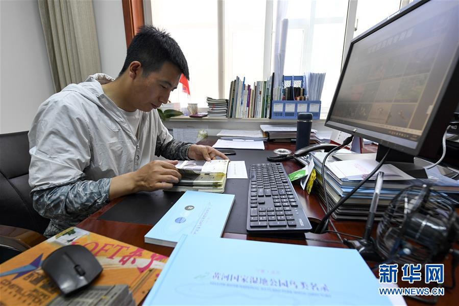 6月3日,李學明在學習鳥類知識。新華社記者馮開華攝。