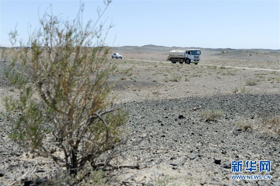 在新疆卡拉麥里山有蹄類野生動物自然保護(hù)區(qū),管護(hù)員為野生動物拉運飲水(6月3日攝)。新華社記者丁磊攝。