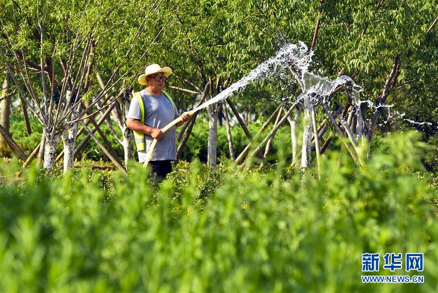 6月5日,在文安縣迎賓大道,工人給花池澆水。近年來,河北省文安縣將植樹造林與城市建設(shè)有機(jī)融合,探索“政府引導(dǎo)、企業(yè)運(yùn)作、多方共贏”的市場(chǎng)化植樹造林新模式,大規(guī)模推進(jìn)國土綠化,打造人與自然和諧共生的優(yōu)美生態(tài)環(huán)境,構(gòu)筑京津雄綠色屏障。截至目前,該縣森林覆蓋率已經(jīng)達(dá)到33%,城區(qū)綠地面積達(dá)到36.48%。新華社記者李曉果攝。