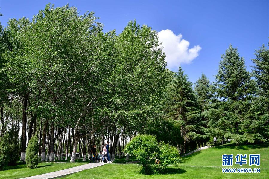 5月30日,西寧市民在青海省西寧市南山公園內散步。近年來,青海省西寧市大力開展植樹造林,在半干旱氣候、濕陷性黃土的現(xiàn)實情況下破解種樹難題,目前全市建成區(qū)綠化覆蓋率已達40.5%。新華社記者張龍攝。