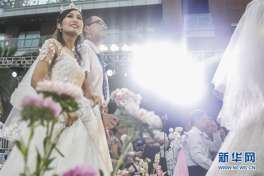 6月6日,新人在海南博鰲樂城國際醫(yī)療旅游先行區(qū)參加集體婚禮。 新華社記者 張玉薇 攝