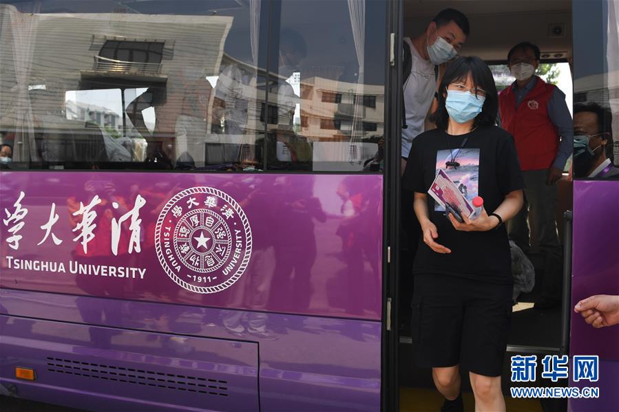6月6日,在清華大學(xué),返校學(xué)生走下清華大學(xué)接站專車。