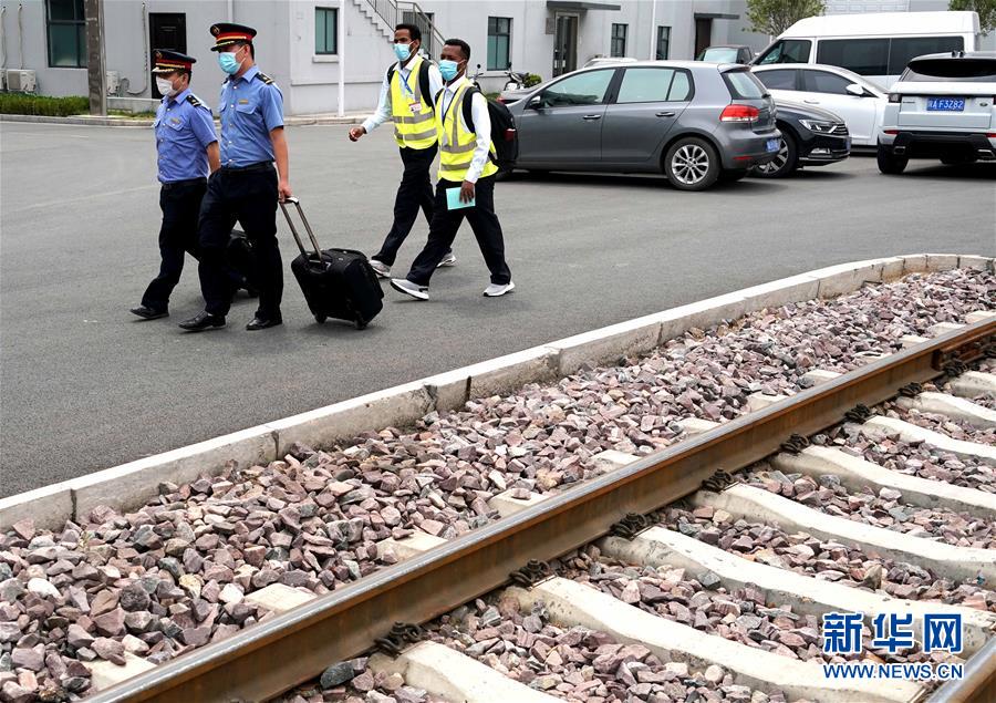 6月5日,伊迪內卡邱(右一)和特瑞薩(右二)在帶教司機的帶領下去庫內接車。 新華社記者 李安 攝