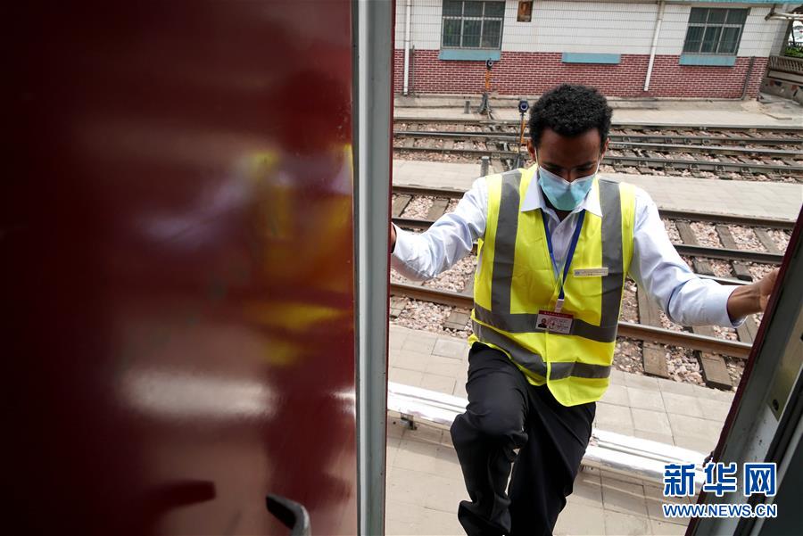 6月5日,特瑞薩在鄭州機(jī)務(wù)段內(nèi)登上機(jī)車。 新華社記者 李安 攝