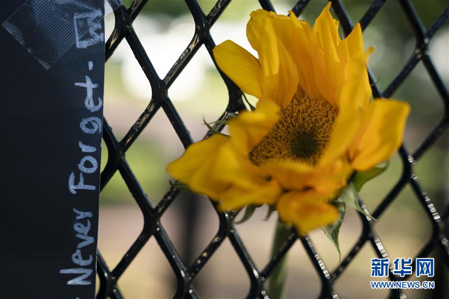 6月8日,美國(guó)華盛頓白宮附近的隔離圍欄上貼著“永不忘卻”的抗議標(biāo)語(yǔ)。新華社記者劉杰攝