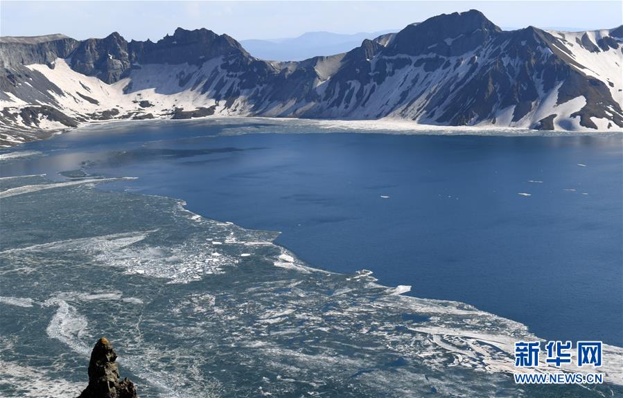 這是6月12日拍攝的長(zhǎng)白山天池。近日,長(zhǎng)白山天池冰層逐漸消融,迎來“開冰季”。新華社記者 林宏 攝