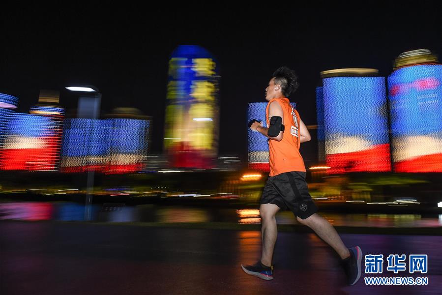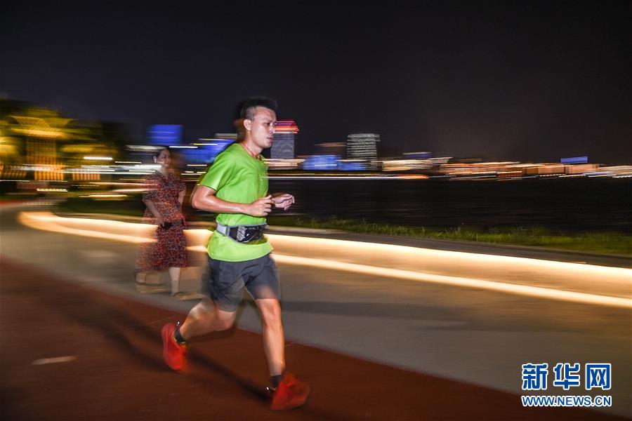 一位市民在??谑兰o(jì)公園濱海步道夜跑(5月15日拍攝)。近年來,夜跑成為越來越多都市人熱衷的健身方式之一。在海南???,每當(dāng)夜幕降臨,“夜跑族”來到??谌f綠園、世紀(jì)公園等夜跑場所跑步,用一身酣暢淋漓的汗水?dāng)[脫白天工作中的壓力,享受跑步帶來的歡愉。新華社記者 蒲曉旭 攝