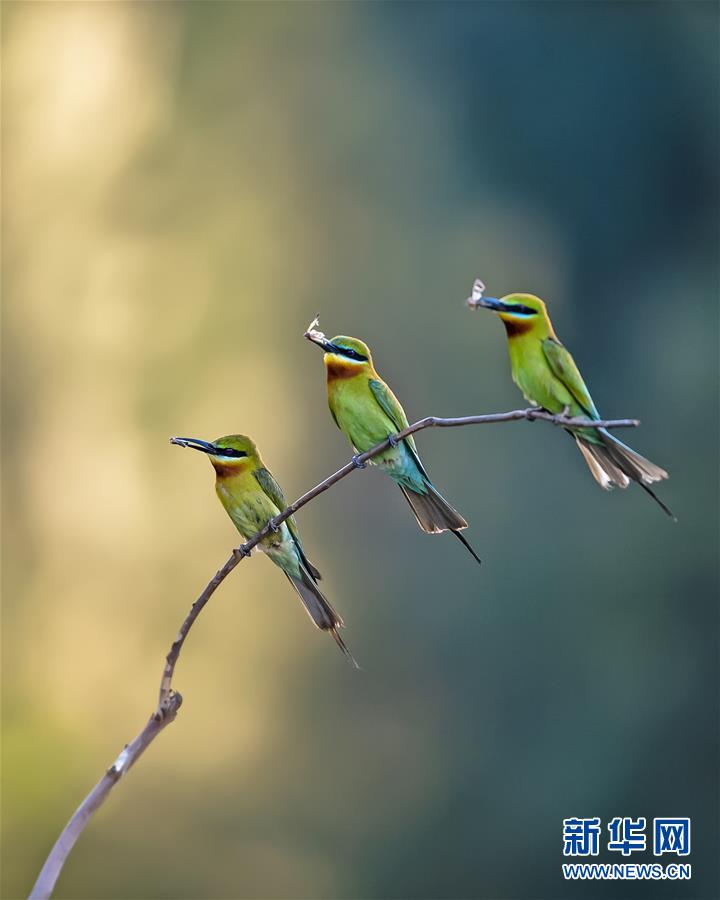 栗喉蜂虎在福建省晉江市深滬鎮(zhèn)科任村一山坡上覓食嬉戲(6月12日攝)。入夏以來(lái),逾百只栗喉蜂虎飛臨閩南晉江市深滬鎮(zhèn)科任村筑巢棲息。新華社記者記者梅永存攝。