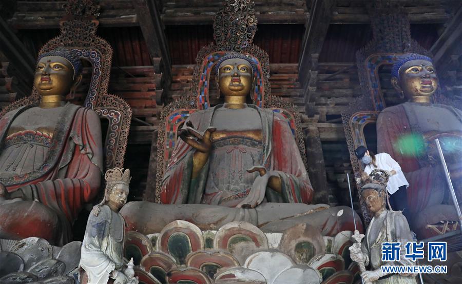 6月8日,工作人員對奉國寺的彩繪泥塑進行保護修復。新華社記者 姚劍鋒 攝