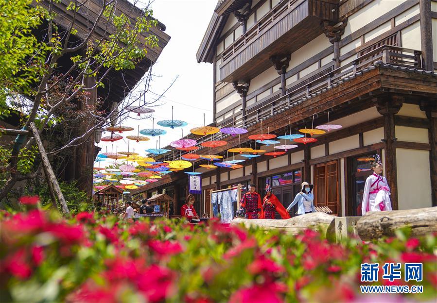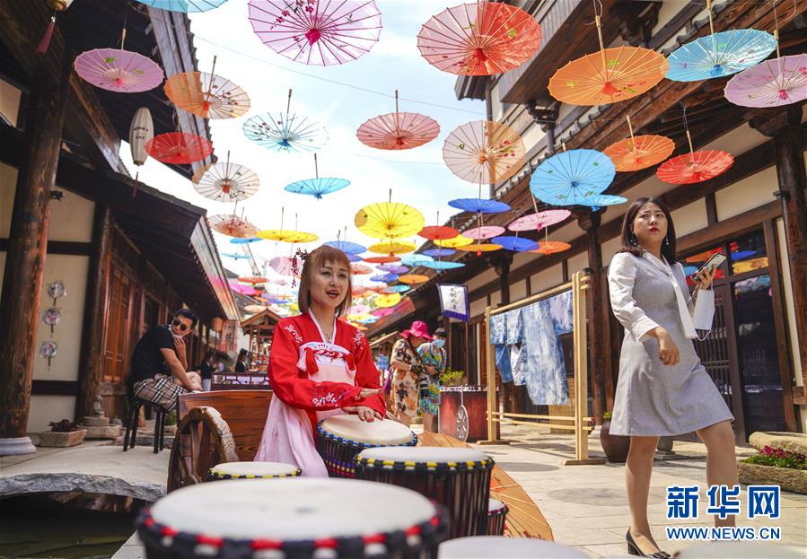 6月13日,在長(zhǎng)春市世茂蓮花山小鎮(zhèn)寬厚里商街,表演者身穿漢服、古裝進(jìn)行表演展示。當(dāng)日是“文化和自然遺產(chǎn)日”。吉林長(zhǎng)春首屆蓮花山消夏生活節(jié)在世茂蓮花山小鎮(zhèn)舉行?;顒?dòng)將非遺展示與假日消暑休閑相結(jié)合,讓游人在“古色古香”的油紙傘巷中品傳統(tǒng)文化魅力,享夏日休閑愜意。新華社記者 許暢 攝