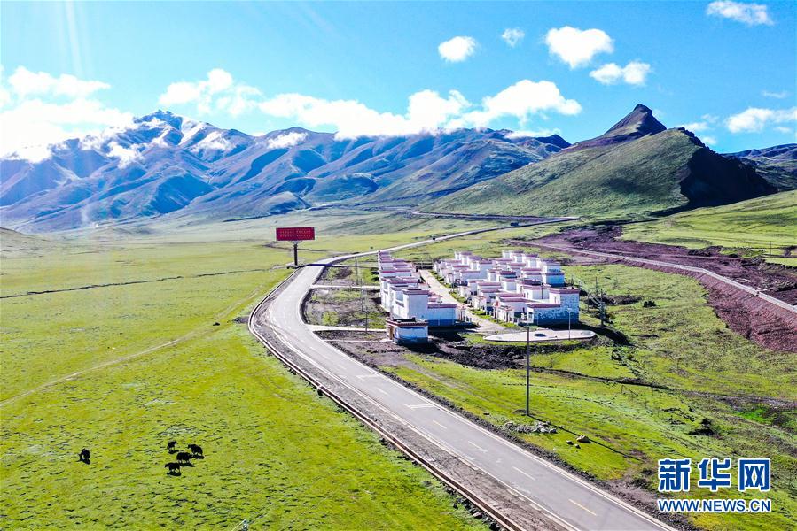國(guó)道317線(xiàn)旁的一處易地扶貧搬遷點(diǎn)(6月14日攝,無(wú)人機(jī)照片)。新華社記者 田金文 攝