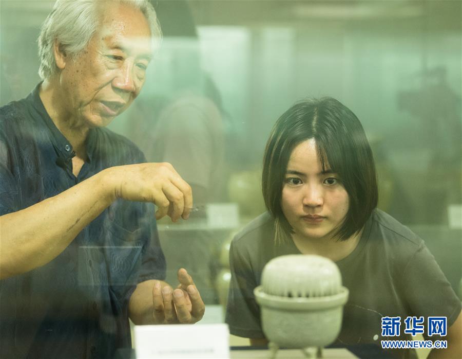 6月17日,在浙江慈溪,聞長(zhǎng)慶向陶瓷愛好者介紹自己燒制的熏爐。新華社記者 翁忻旸 攝