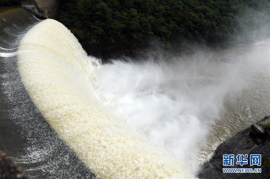 6月16日,位于安徽省金寨縣的青山水庫(kù)在進(jìn)行泄洪。新華社記者 周牧 攝