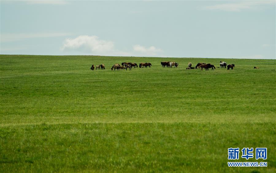 6月17日,馬兒在錫林郭勒盟烏拉蓋草原上吃草。初夏時(shí)節(jié),內(nèi)蒙古中部的錫林郭勒大草原風(fēng)景如畫(huà)。新華社記者連振攝